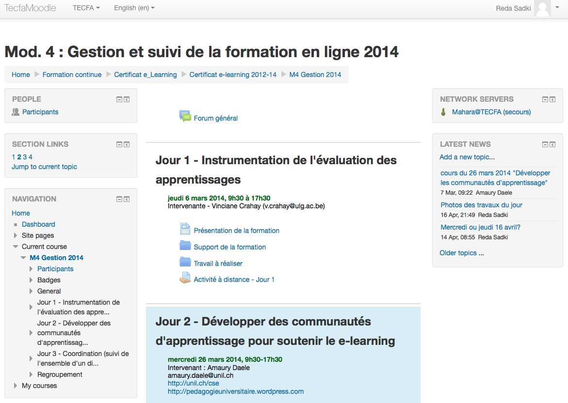 In Moodle, you see the syllabus and, separate from that, a discussion forum. Dialogue is hidden from view, organized into one or more silos. Learners can submit work to the tutor or teacher, and then the assumption is that this teacher evaluates the work. This model requires more tutors for more learners. It is expensive to scale, and not very practical. Moodle replicates the classroom learning architecture. I understand that in the early days this may have been important to reassure professors exploring the use of technology that they could reproduce their behavior and keep the same habits of teaching. It is particularly ironic that, buried in Moodle’s documentation, you will find the claim that its design and development are guided by social constructionist pedagogy. That was a long time ago.